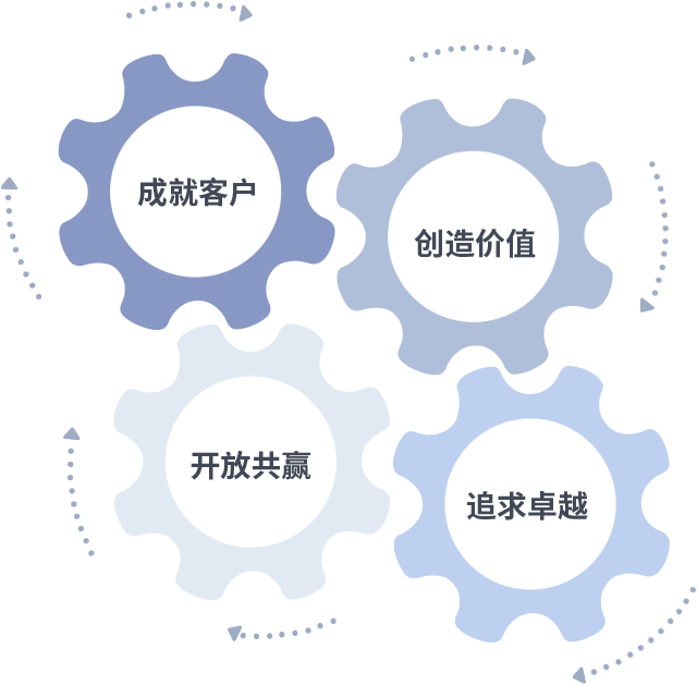 成就客户是一切决策的出发点,创造价值是衡量所有工作的标准,追求卓越是w66利来做事做人的态度,开放共赢是w66利来的格局也是最终的结果。价值观的齿轮环环相扣,推动着组织里的每个人不断向前。